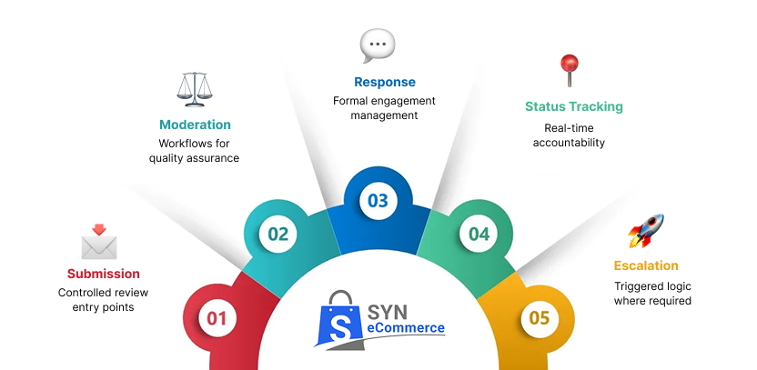 SyneCommerce provides a controlled environment where feedback is captured, moderated, and acted upon through a consistent process - not just scattered inputs.